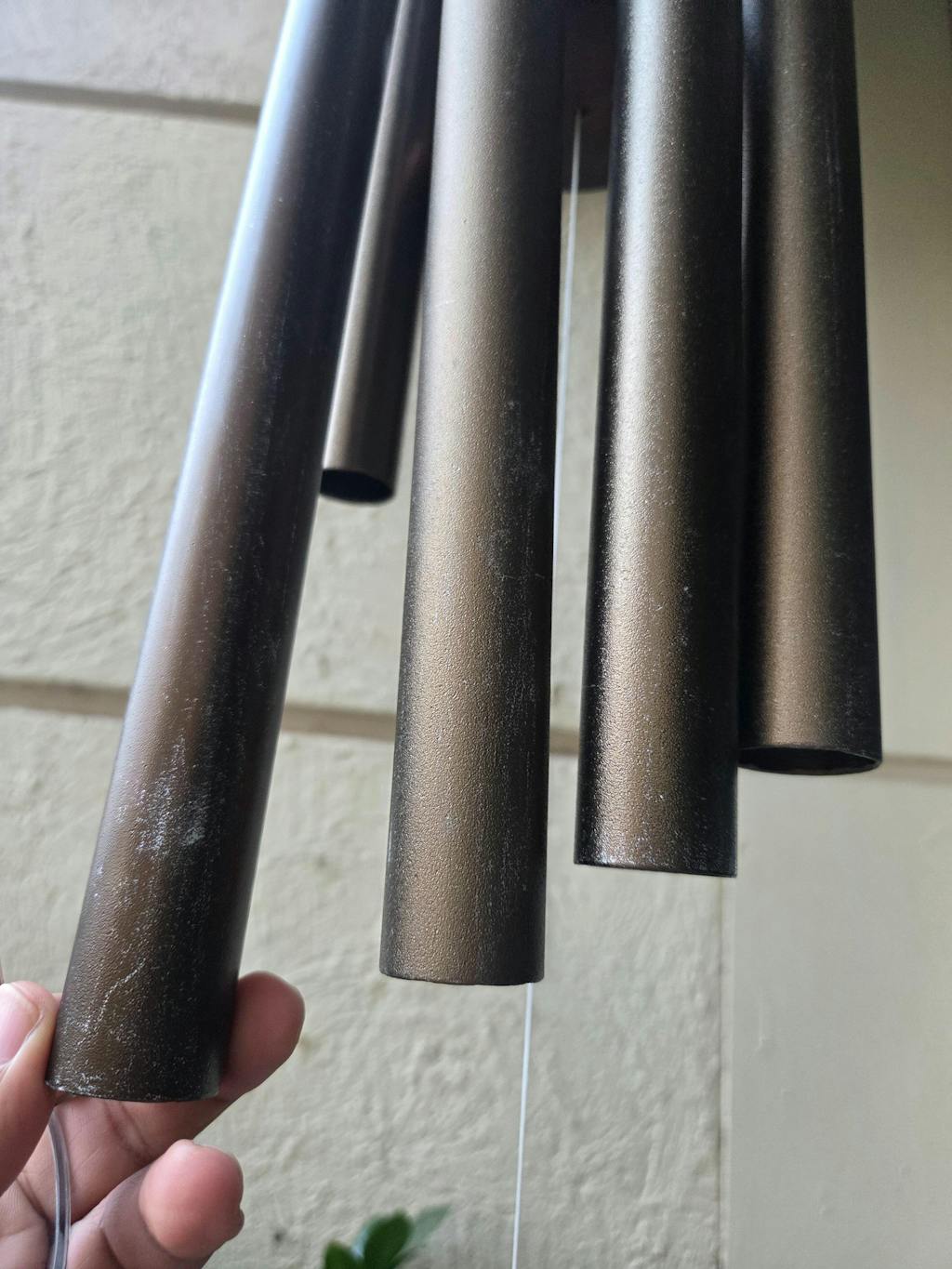 The chimes are suspended with heavy-duty, braided polyester strings, built to withstand the elements and ensure durability in any weather.
