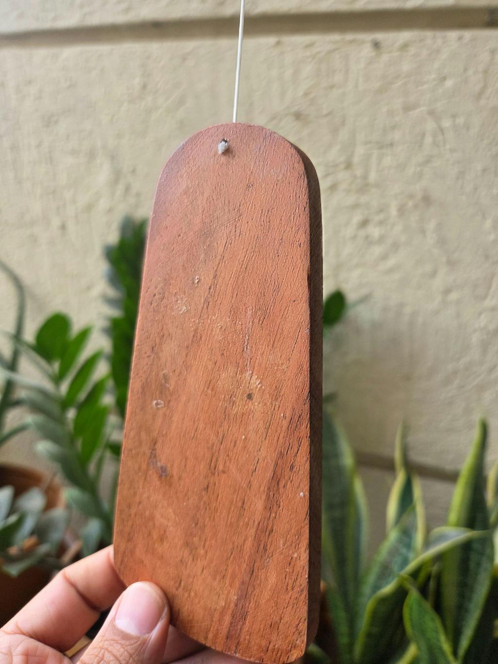 At the heart of the chime, a sheesham wood striker in togetherness with the wind catcher creating a mirror soul to each other add warmth and elegance, dancing gently with the breeze to produce soul calming sounds.