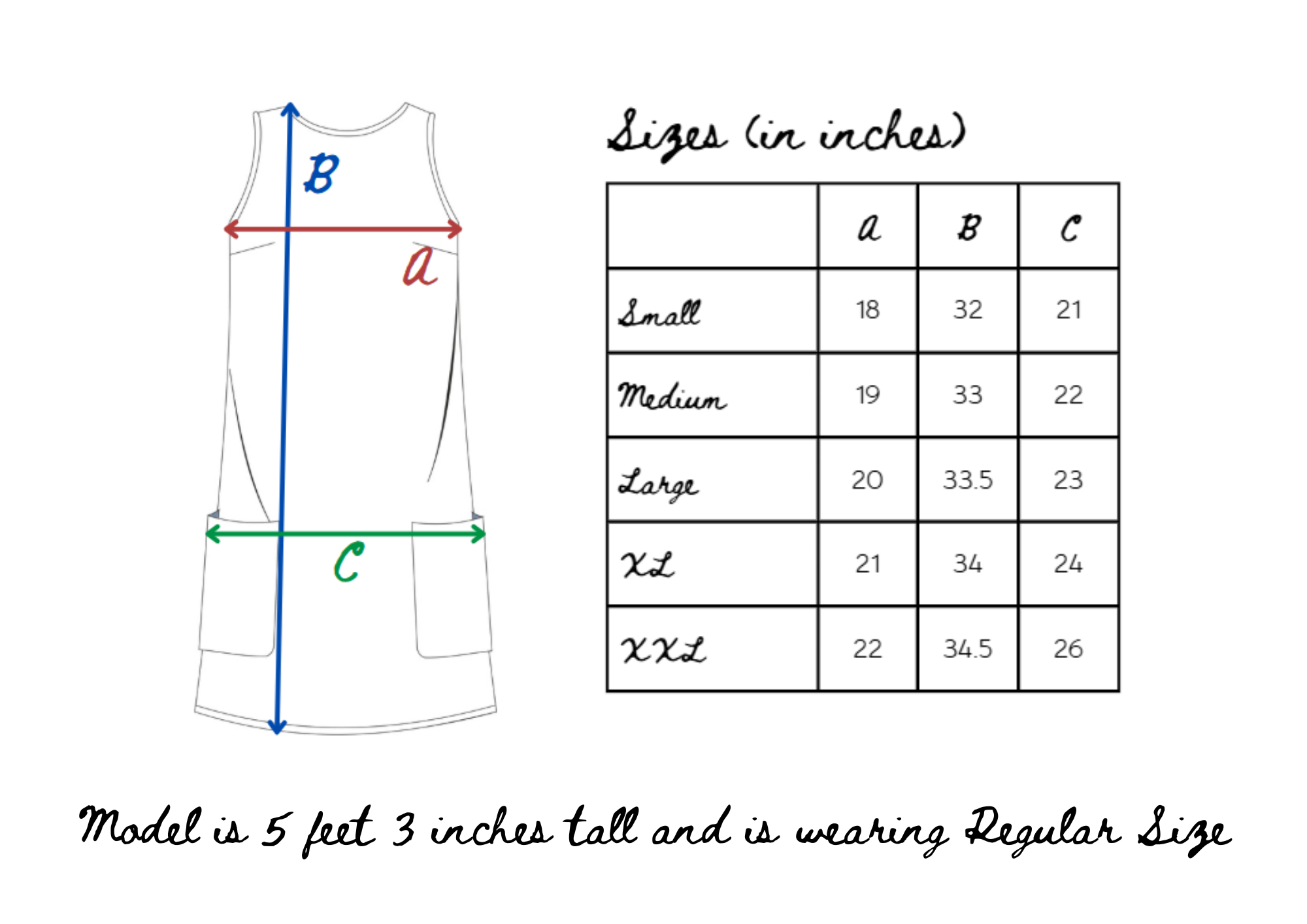 Size Chart (in inches):