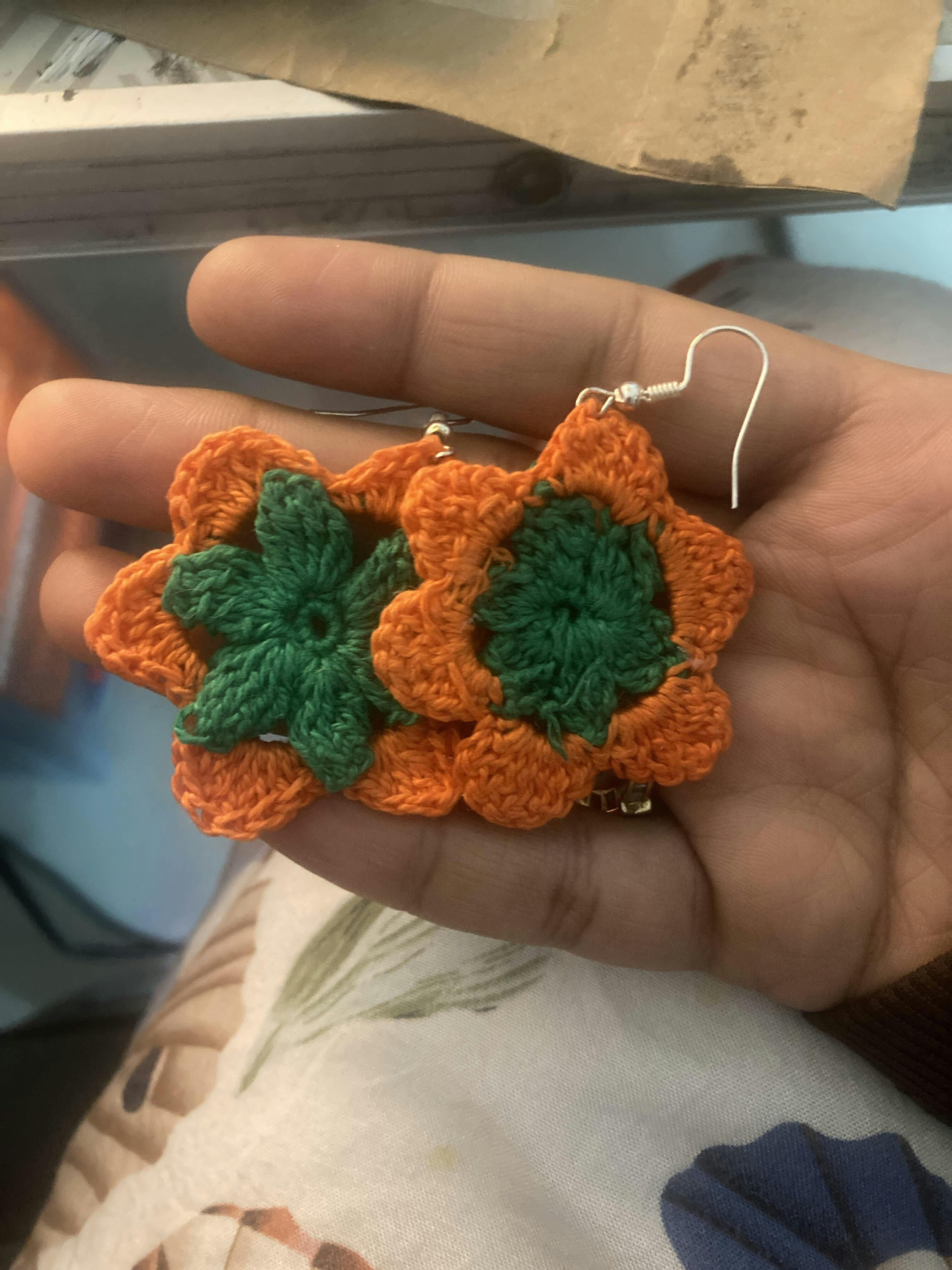 Each pair of these exquisite crochet earrings is lovingly handcrafted by my mother — a woman whose hands have turned yarn into poetry. Woven with intricate precision and timeless patience, these earrings are more than just adornments; they are stories of warmth, legacy, and artisanal beauty.