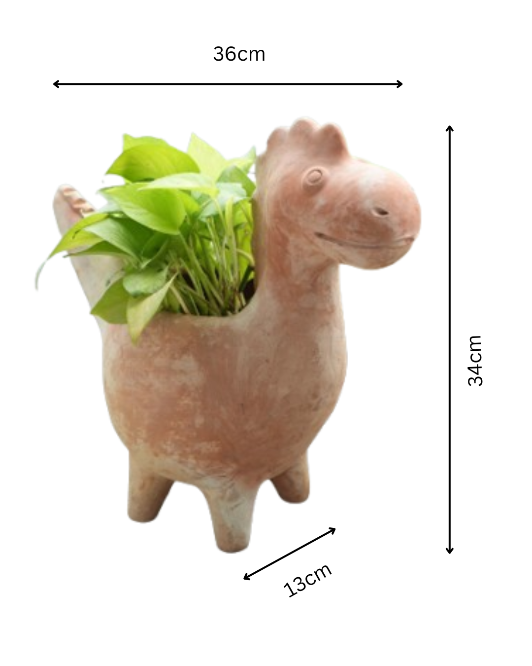 Unleash Prehistoric Charm with a Dinosaur Earthen PlanterDisplayed indoors or outdoors, this planter becomes a captivating conversation piece and a source of nostalgic charm.Indoors, it becomes a playful addition to your living room, nursery, or study, inviting curiosity and sparking the imagination. Outdoors, it adds a touch of adventure to your garden or patio, creating a prehistoric oasis that fascinates both young and old. The spacious hollow interior of the planter accommodates a variety of plants, allowing you to showcase vibrant flowers or lush greenery.