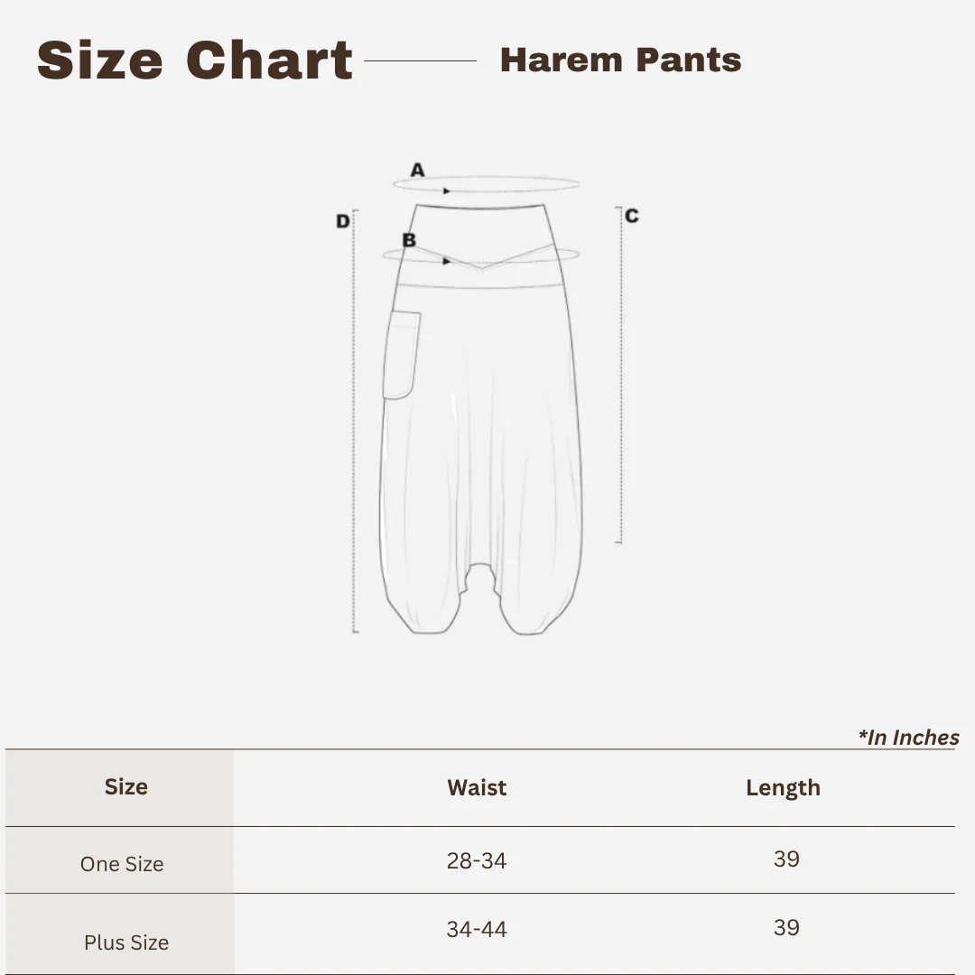 Material: These hippie harem yoga pants are made with 100% cotton. The fabric is soft, skin-friendly and breathable. This fabric gets softer after the first wash.