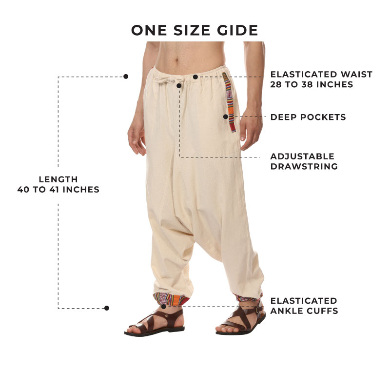 Men's Tribal Harem | Cream | Fits Waist Sizes 28 to 36 Inches