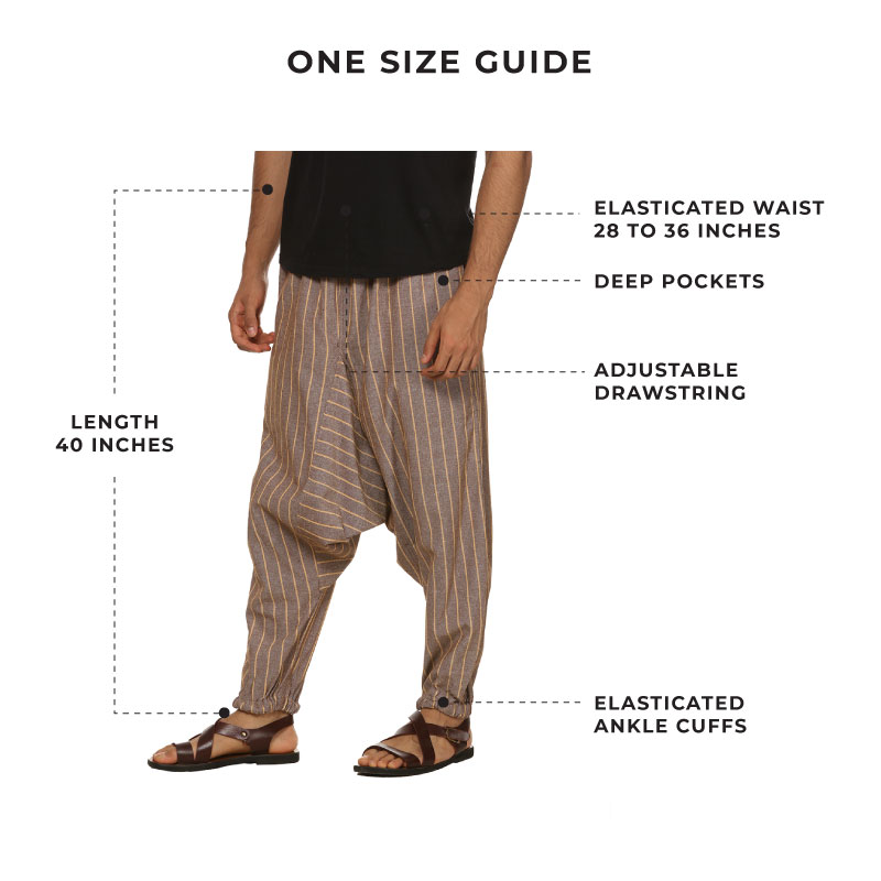 Men's Harem Pant | Brown Stripes | Fits Waist Size 28" to 36"