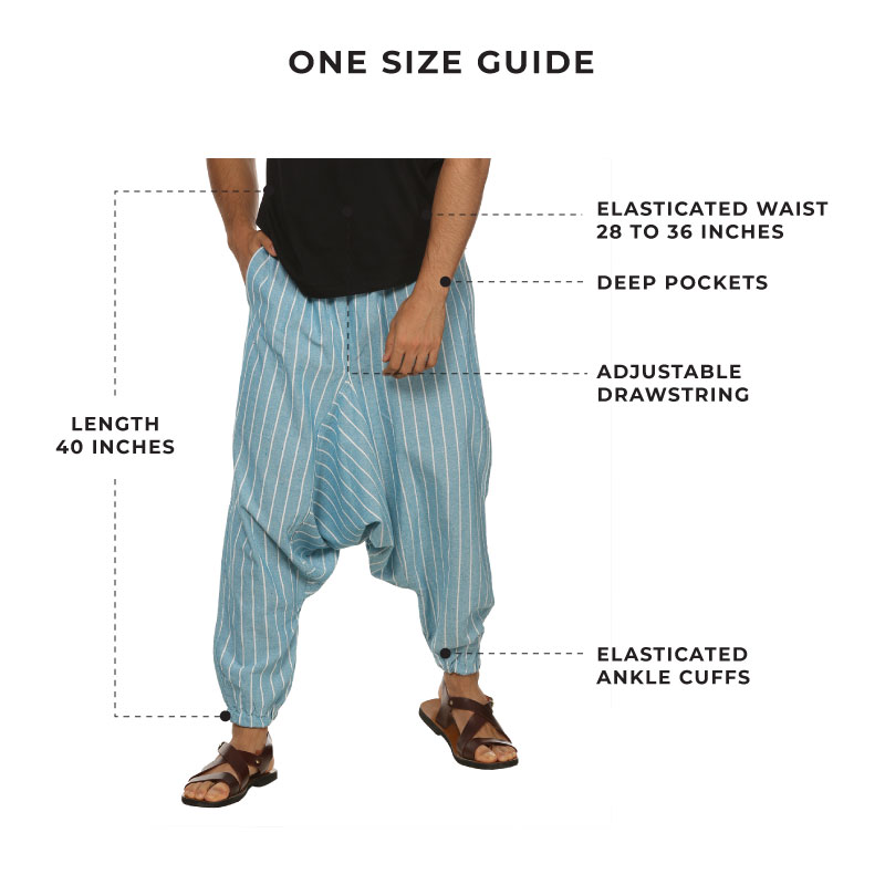 Men's Harem Pant | Blue Stripes | Fits Waist Size 28" to 36"