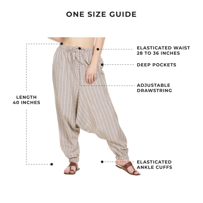Women's Harem Pant | Grey Stripes | Fits Waist Size 28" to 36"
